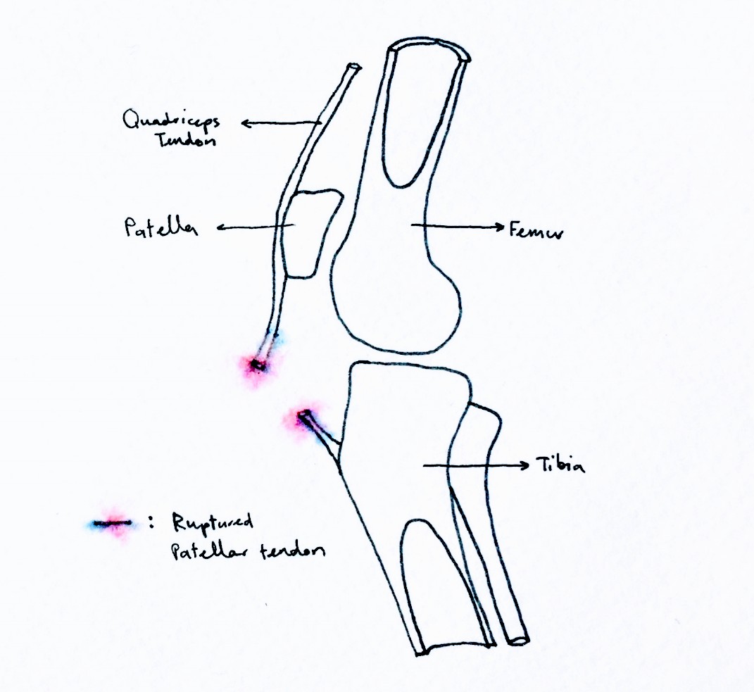 5. Watts, Evan. Patellar Tendon Rupture. Ortho bullets. Retrieved April 2 2019. https://www.orthobullets.com/knee-and-sports/3024/patella-tendon-rupture