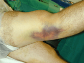 Inspection: Look for signs of external swelling and bruising or obvious deformity of the knee.